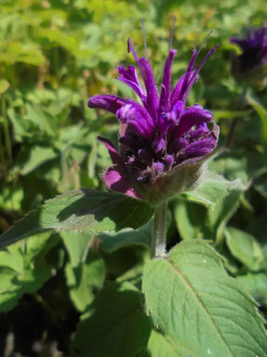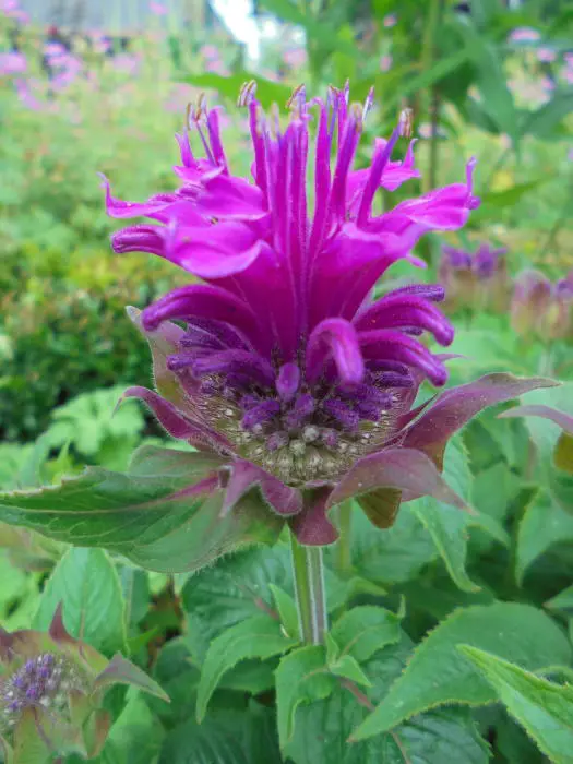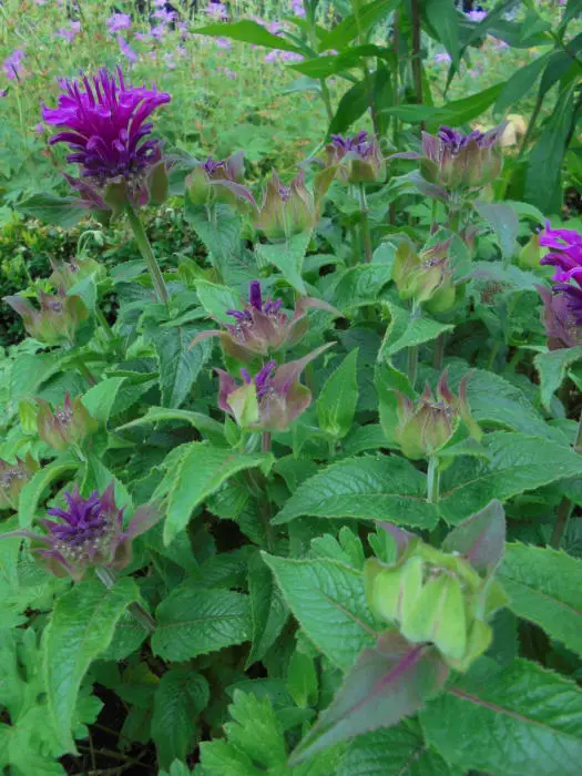 Monarda 'Purple Lace' is sterk vertakt en bloeit met diep purperrode bloemen met paarse schutbladen