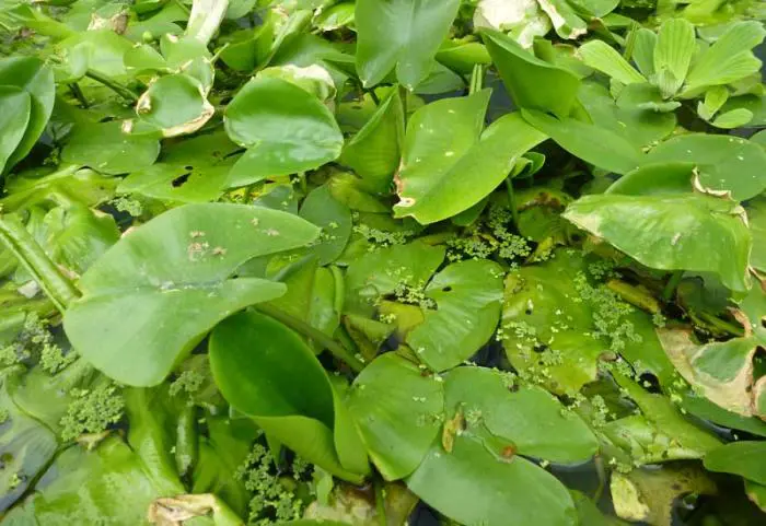 In de winter verdwijnt het blad maar blijft groen onder water.