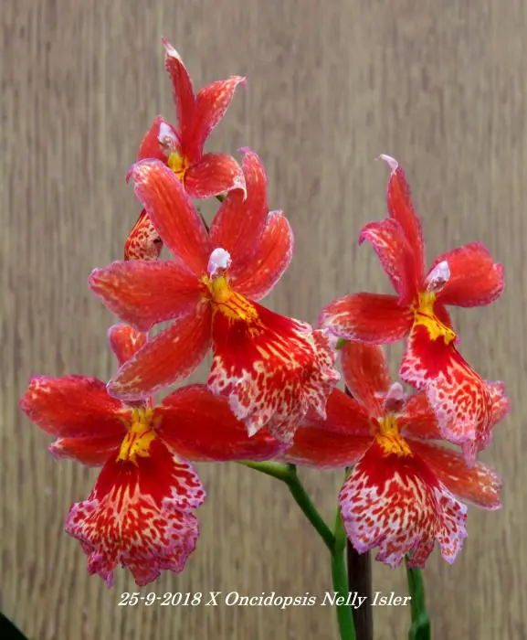 De Cambria is een verzamelnaam voor een groep gekruiste orchideeën waaronder deze epiphytische orchidee x Oncidopsis Nelly Isler.