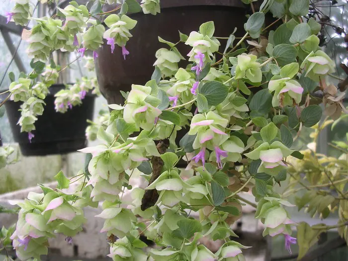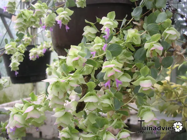 De hartvormige blaadjes zijn grijsgroen.