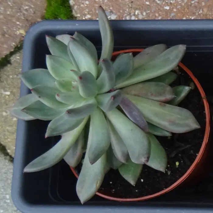 Het is een vetplant met rozettten van volle dikke, zilvergroene bladeren met soms een paarse tot lila blos en bedekt met een poederige witte waslaag (farina). Dit is een natuurlijke vorm van bescherming en mag niet worden weggeveegd.