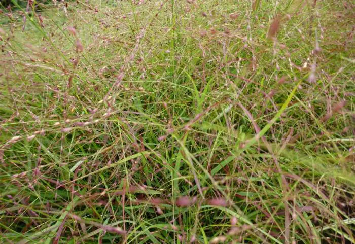 De bloei gebeurt in de nazomer met rozig/bruine bloempluimpjes.