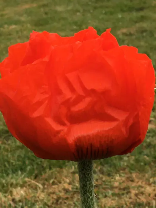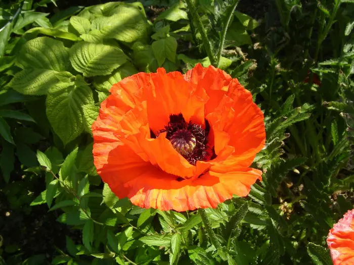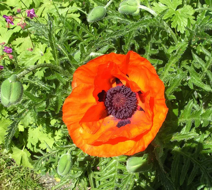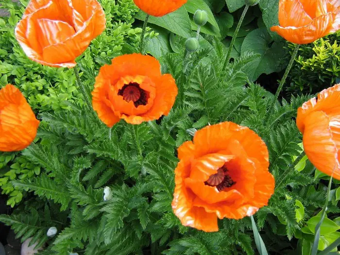Papaver orientale is een opgaande vaste plant met fijn verdeelde, ruw behaarde, grijsgroene bladeren.