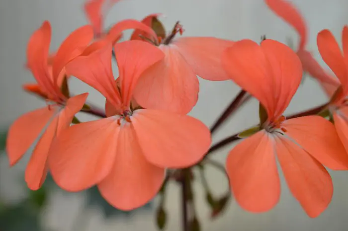 Pelargonium 'Alde' is en miniatuurvariëteit met enkelvoudige zalmroze bloemen.