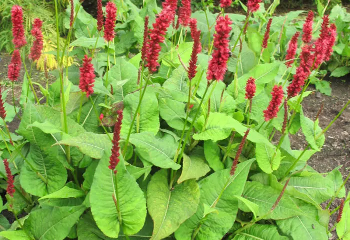 Persicaria amplexicaulis 'Bonfire' geeft een verticaal accent in de border. Een forse bossige plant die vooral mooi uitkomt in grotere groepen.