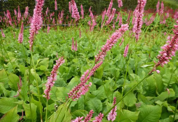 Ze bloeien lang door en rijkelijk met roze grotere aren aan een lange stengel.