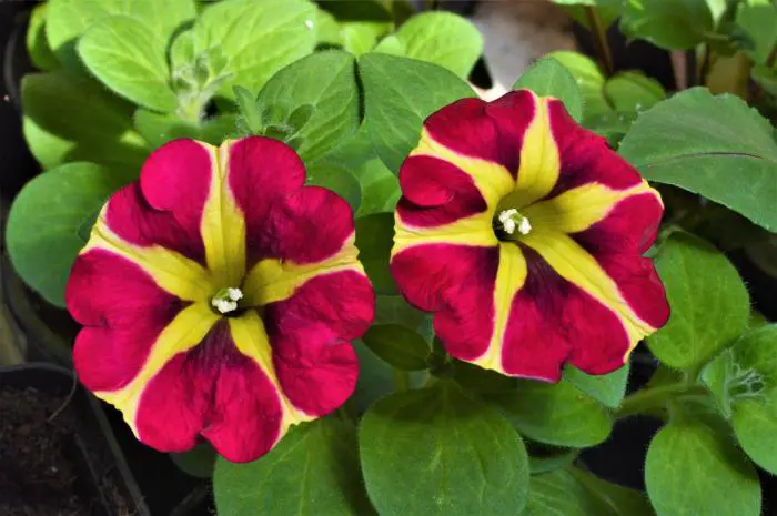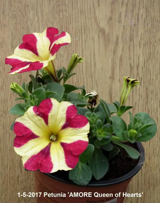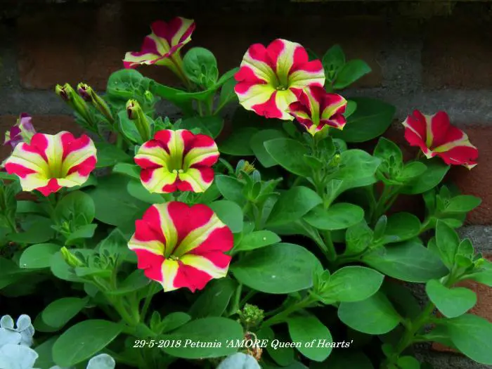 Het hartje is een kenmerk bij de petunia's van deze Amore-serie.