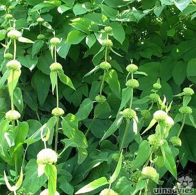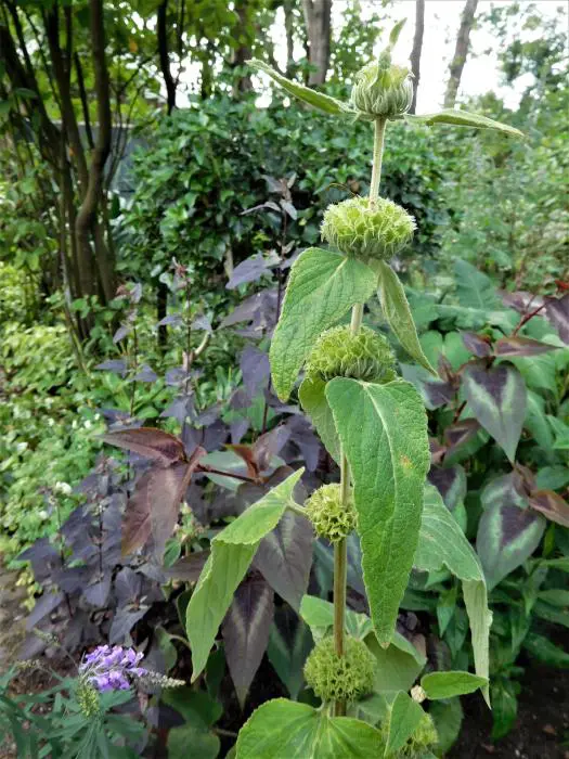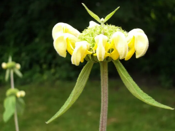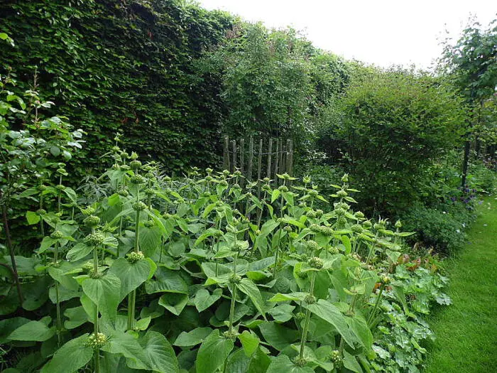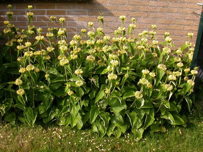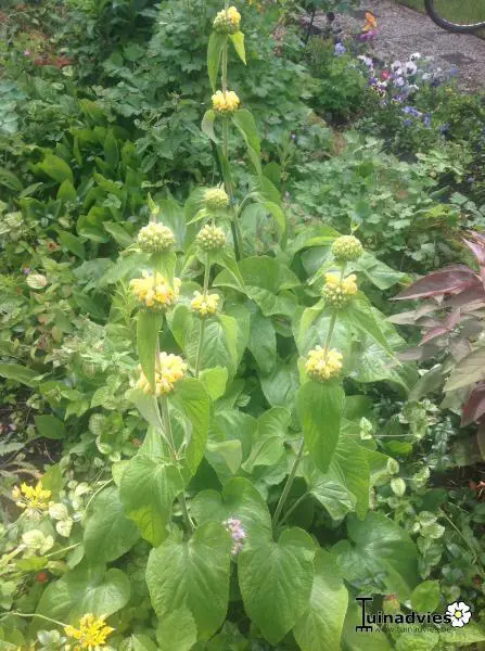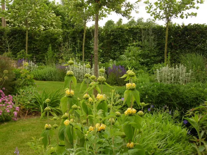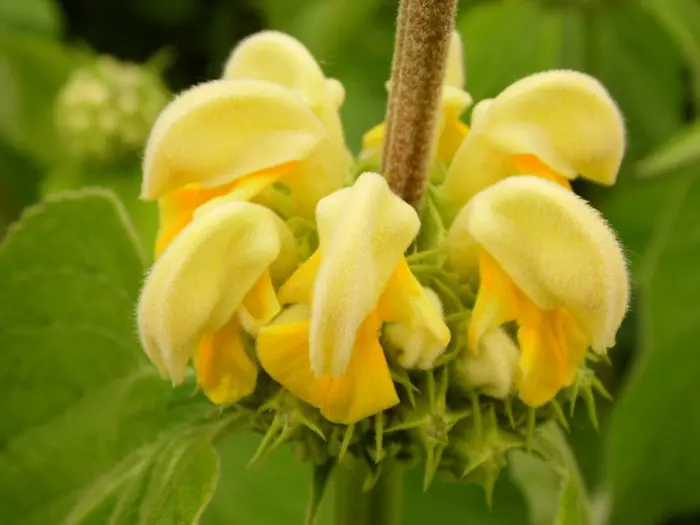 Phlomis russeliana is een mooie bodembedekkende vaste plant die rechtopstaande bloemenstelen vormt in bleekgele kransen.