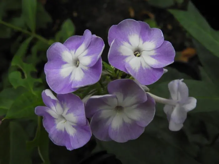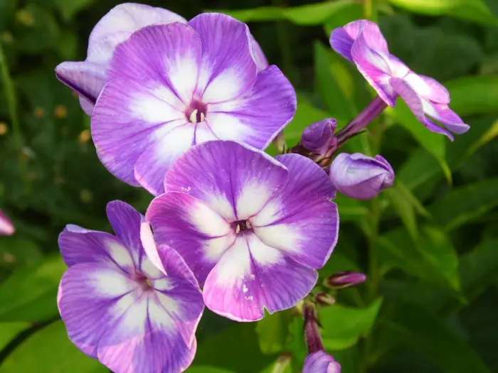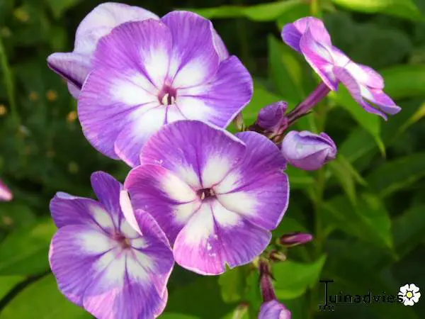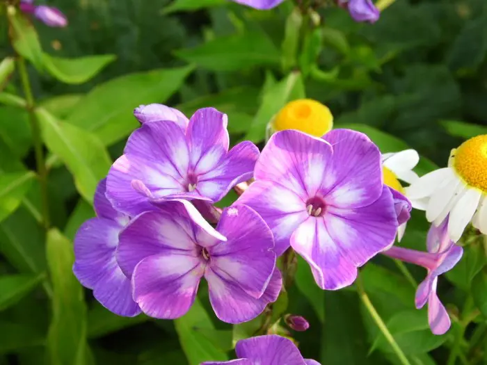 Deze Phlox paniculata 'Blue Boy' verdwijnt onder de bloemtrossen van mauveblauwe bloemen met wit in het centrum.