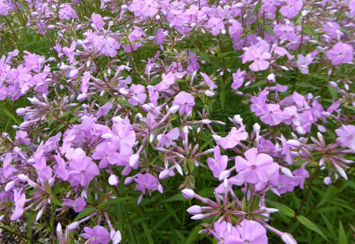 De bloempjes zijn kleiner dan bij de Phlox paniculata maar wel talrijker.
