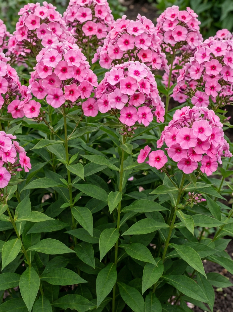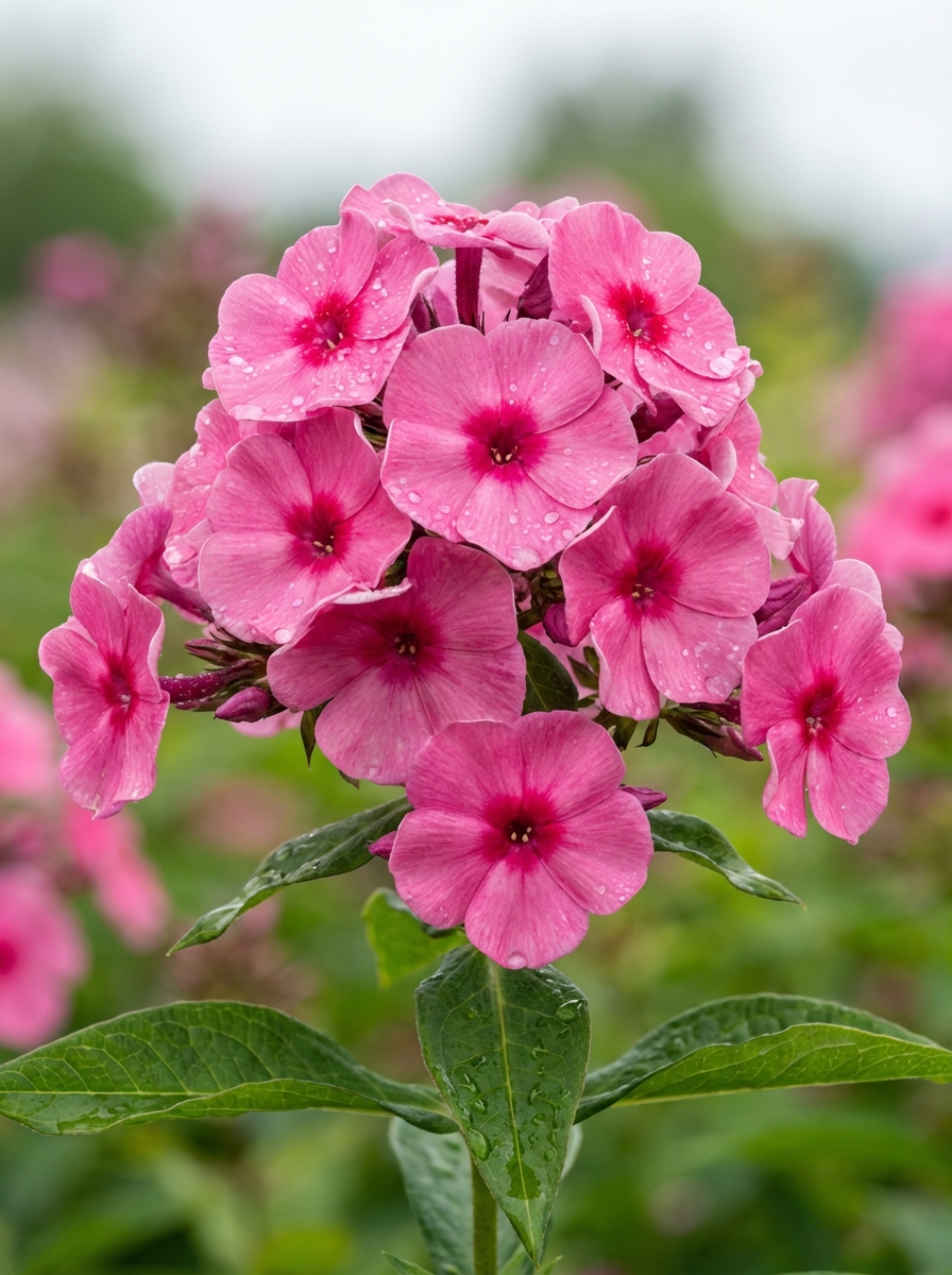 Phlox paniculata 'Betty Vulcano' is een meeldauwvrije floks met roze bloemen en een rood hart.