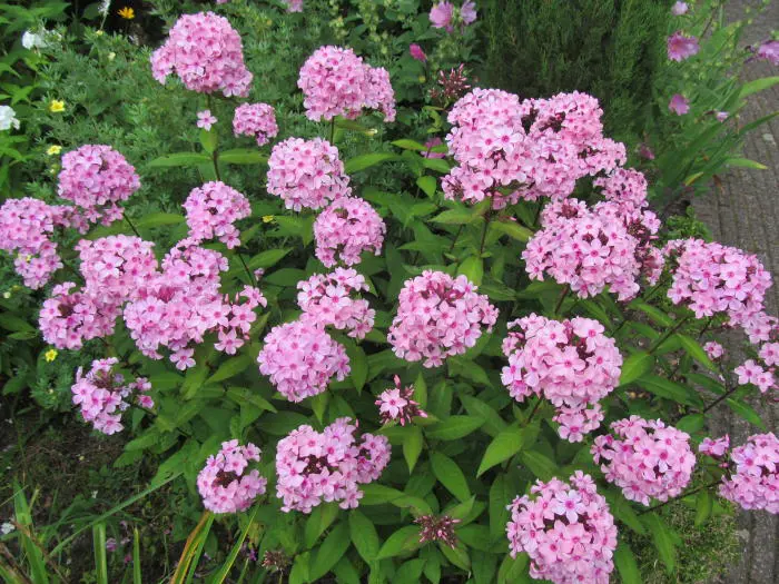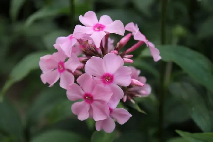 Phlox 'Sweet Summer Melody` bloeit roze met een donkerroze hart.
