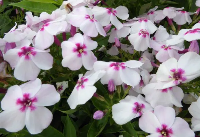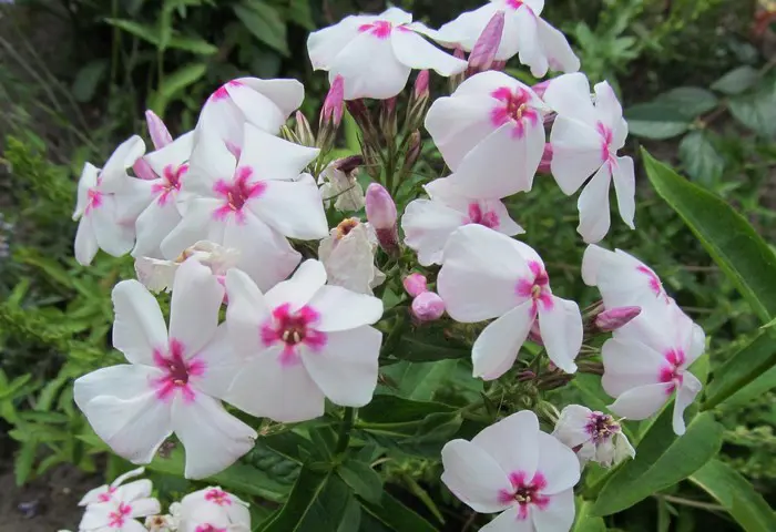 Phlox paniculata 'White Eye Flame' is een laagblijvende geurende witte floks met dieproze hart uit de Flame-serie.