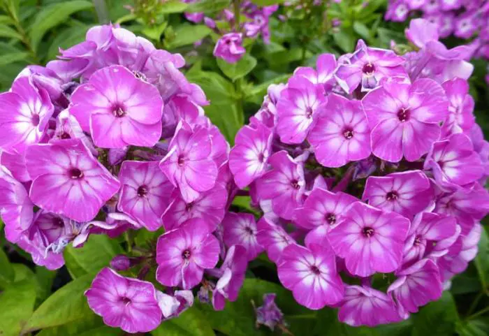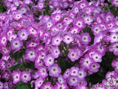 Een Phlox uit de Flame-serie met lavendel/violetpaarse bloemen met een wit oog.