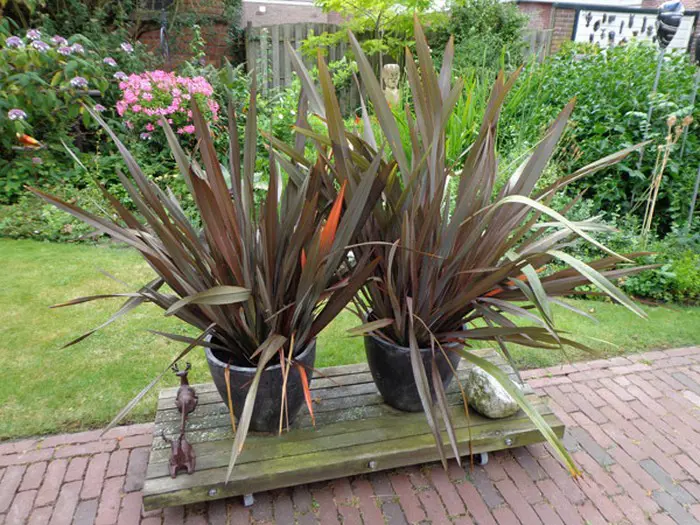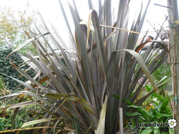 Phormium tenax is matig winterhard en kan mits een laagje mulch vorst tot max -10°C aan. Wil je zeker zijn dat de plant de winter overleeft, dan is het beter deze plant in kuip binnen te overwinteren.
