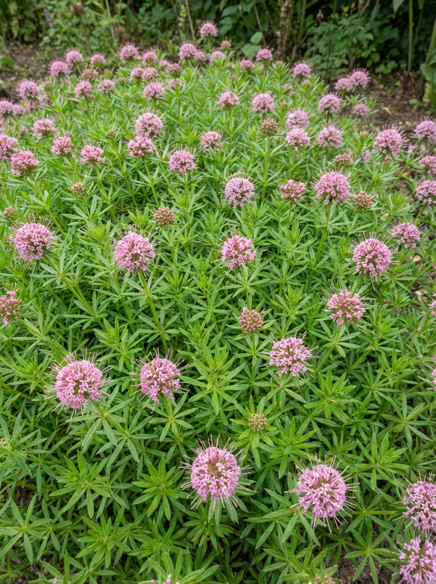 Phuopsis stylosa is een bloeiende bodembedekker met een half bolvormige bloeiwijze van kleine stervormige roze bloempjes.