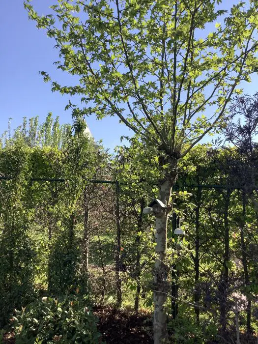 Deze Platanus orientalis 'Minaret' is een smal opgaande boom met diep ingesneden bladeren.