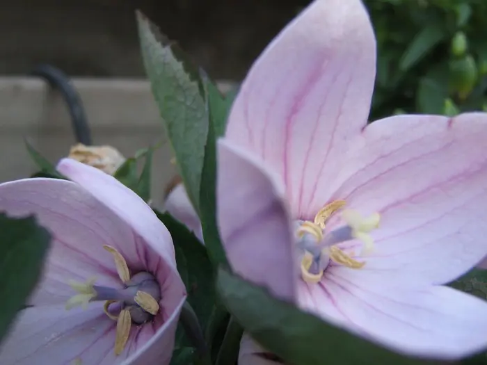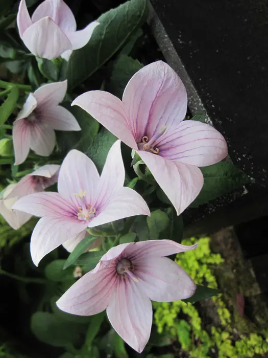 Platycodon grandiflorus 'Perlmutterschale' bloeit de hele zomer met ballonvormige bloemknoppen die openbloeien met stervormige zachtroze bloemen en die aan klokjesbloemen (Campanula) doen denken.