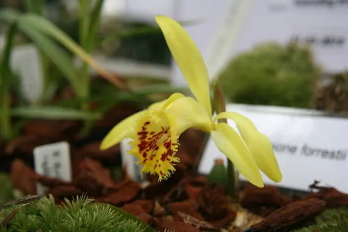 Pleione forrestii is de enige gele Pleionesoort.