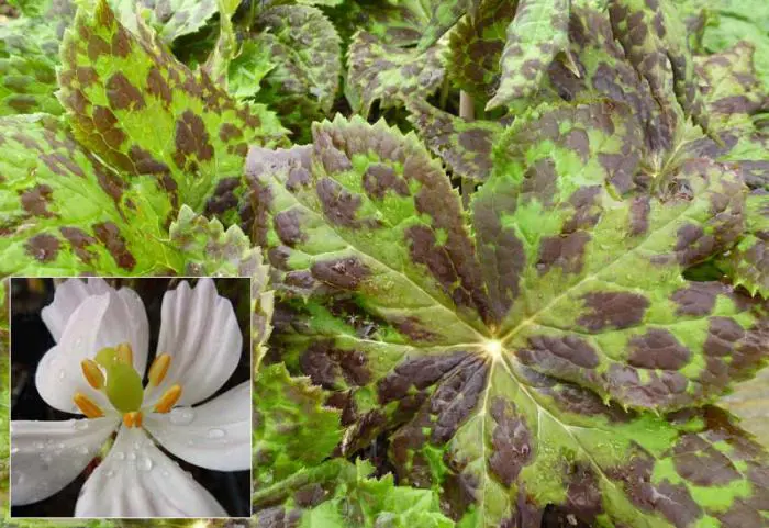 Podophyllum peltatum is een vaste plant met zeer decoratieve bladeren.