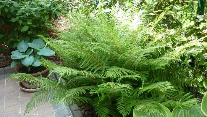 Polystichum setiferum 'Pulcherrimum Bevis' is een grote varen met glanzende groene bladeren.Wordt h80xb50cm
