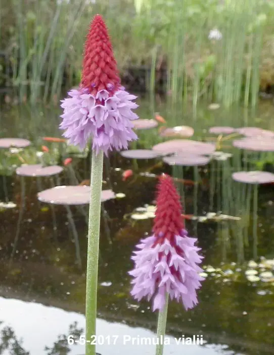 Primula vialii is een vaste plant uit Yunnan (China) en moeilijk te houden is in ons klimaat. Wordt dan ook als een tweejarige gezien.