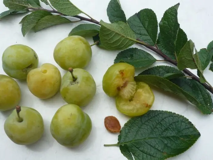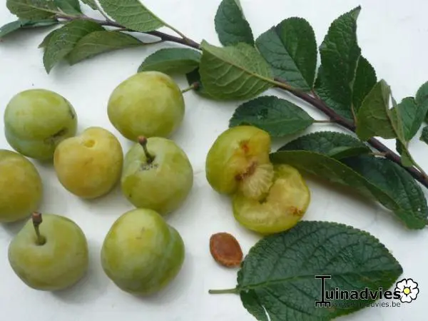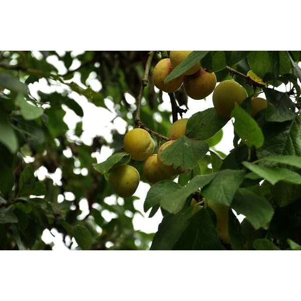 Prunus domestica ´Reine Claude d´Oullins´ heeft gele ronde zoete pruimen en zijn in augustus rijp.