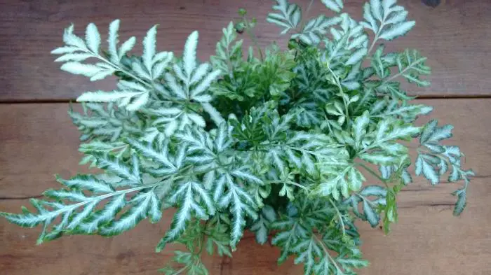 Het is een zeer aantrekkelijke kleine varen met bonte bladeren, zilvergestreept/donkergroen aan de randen.