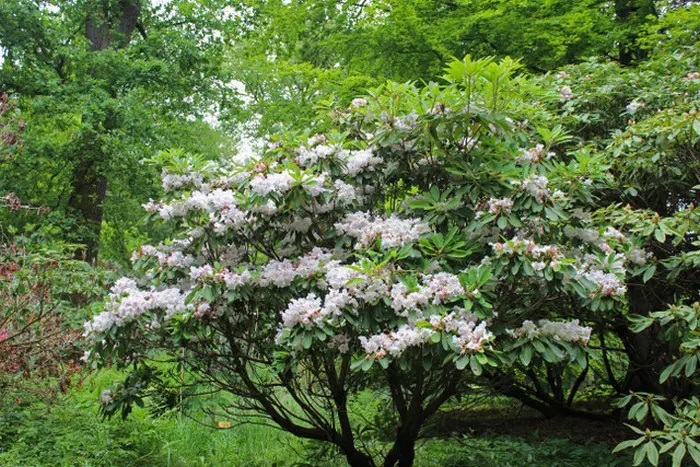 Rhododendron fortunei ssp fortunei heeft grotere bladeren dan de ssp.discolor.