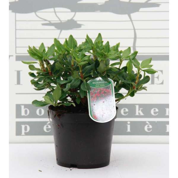 Rhododendron 'Baden-Baden' is een laagblijvende brede struik (80x100cm).