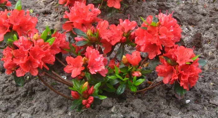 De Japanse azalea 'Geisha Red' is een kleinbladige met trechtervormige rozerode bloemen en heeft een platte breedvormige groeiwijze.