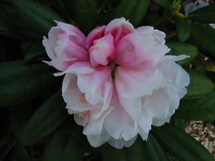 Rhododendron yakushimanum Fcc( Fcc. =First Class Certificate) is een compacte, dichte en koepelvormige struik met lancetvormige groene bladeren. Het jong schot heeft een zilverachtige beharing.