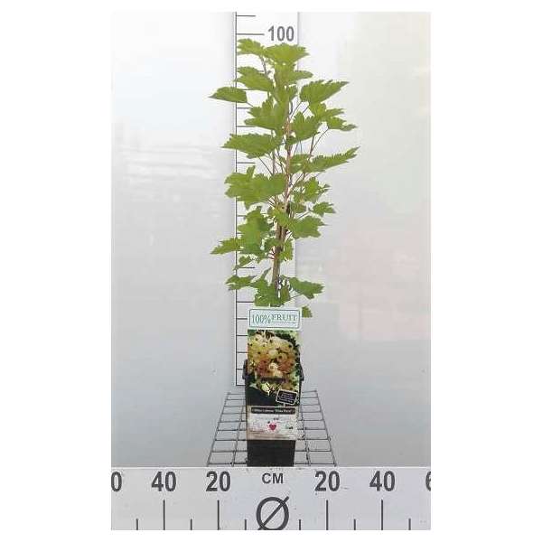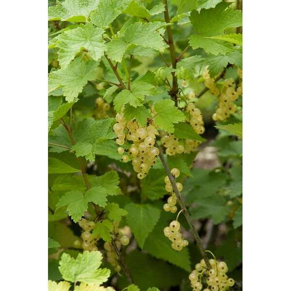 Ribes rubrum 'Witte Parel' produceert witte zeer zoete bessen aan middellange trossen.