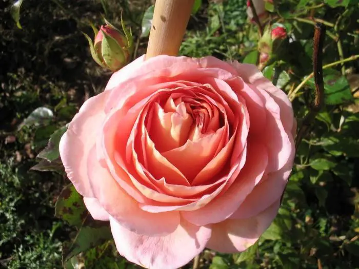 De geur is sterk, kruidig en fruitig, de bloemkleur is abrikoos koperkleurig met iets roze aan de buitenkant.
