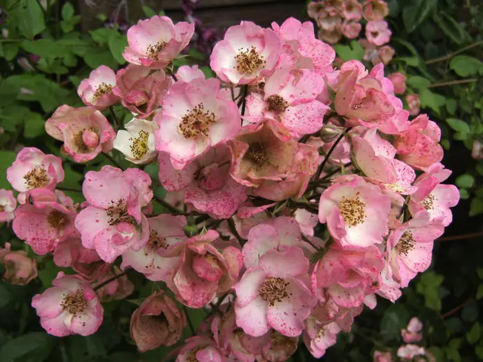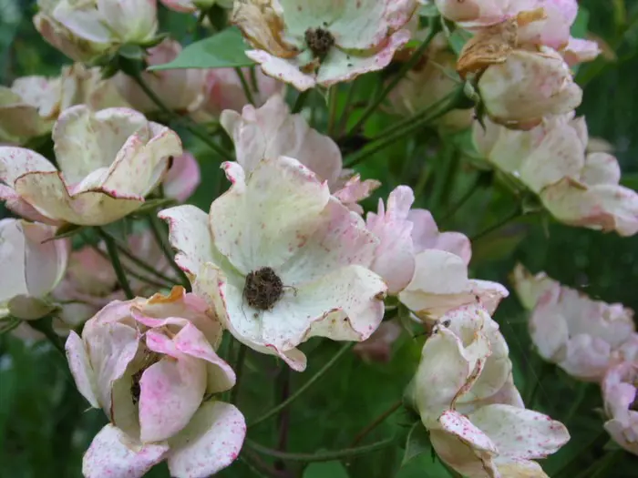 Van de regen krijgt ze rode spikkels op haar bloemblaadjes.