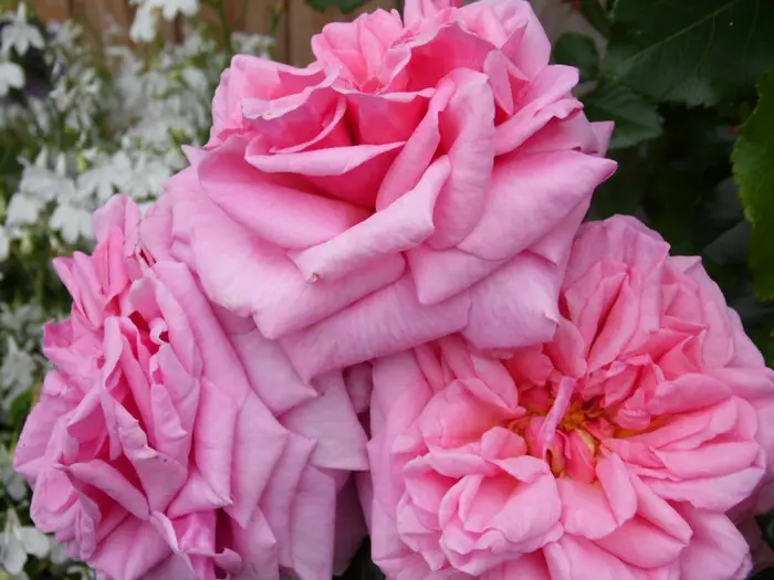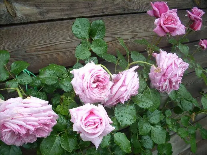 Een heesterroos (120cm) dat ook als klimroos (250cm) kan gebruikt worden.