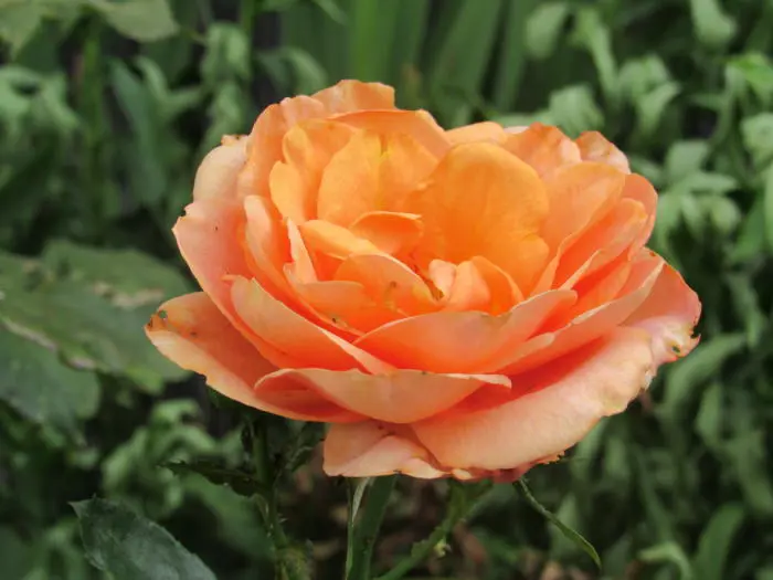 Rosa 'Bengali' is een zacht geurende doorbloeiende roos met oranjerode bloemen.