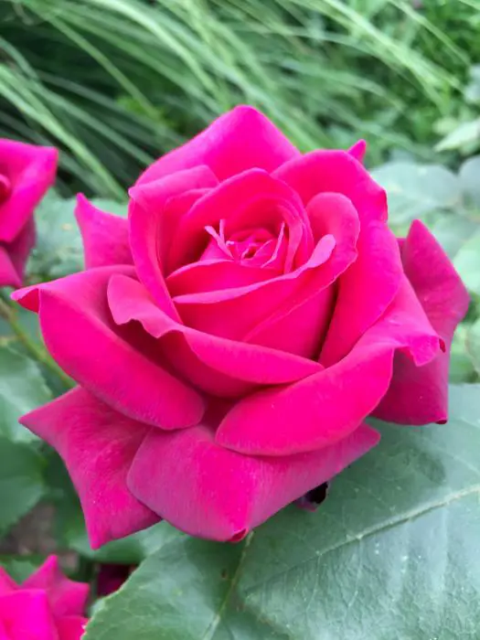 Rosa ''Gräfin Diana' is een sterk geurende "blauwe" roos met paarsviolette, goed gevulde grote bloemen.