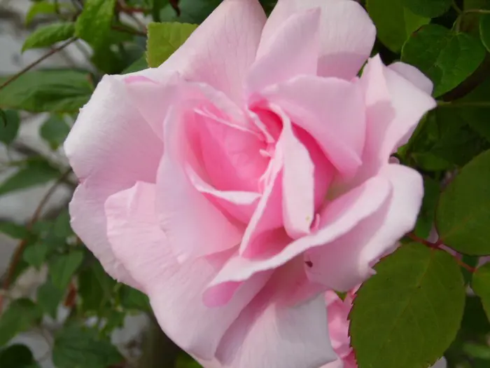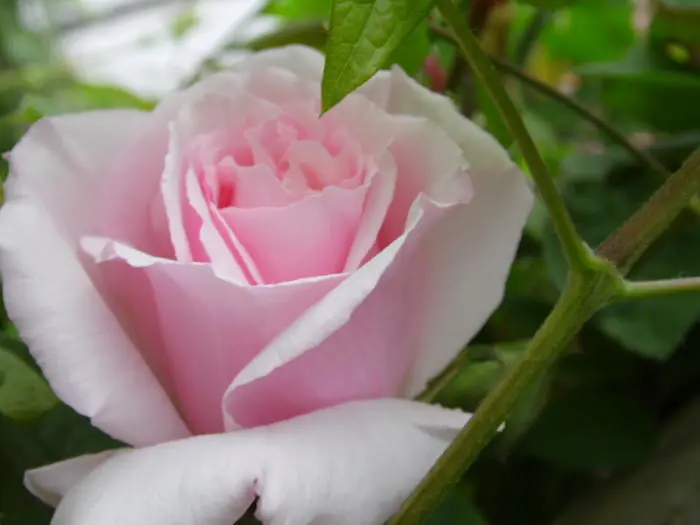 Rosa 'Kathleen Harrop' is een goed doorbloeiende, sterk geurende roos met zachtroze tot witroze gevulde bloemen. Na de eerste bloei zijn de rozen iets kleiner en minder gevuld.