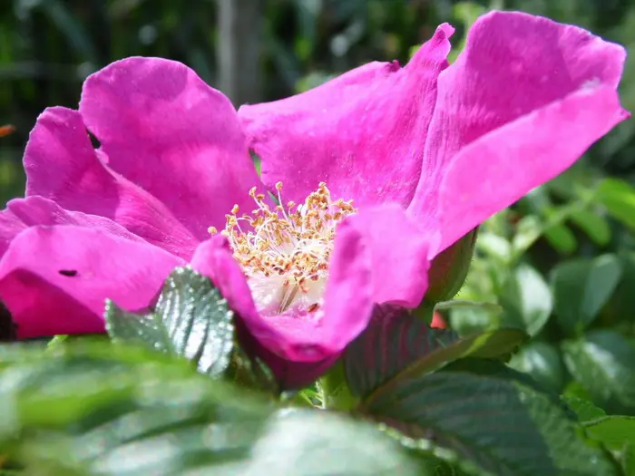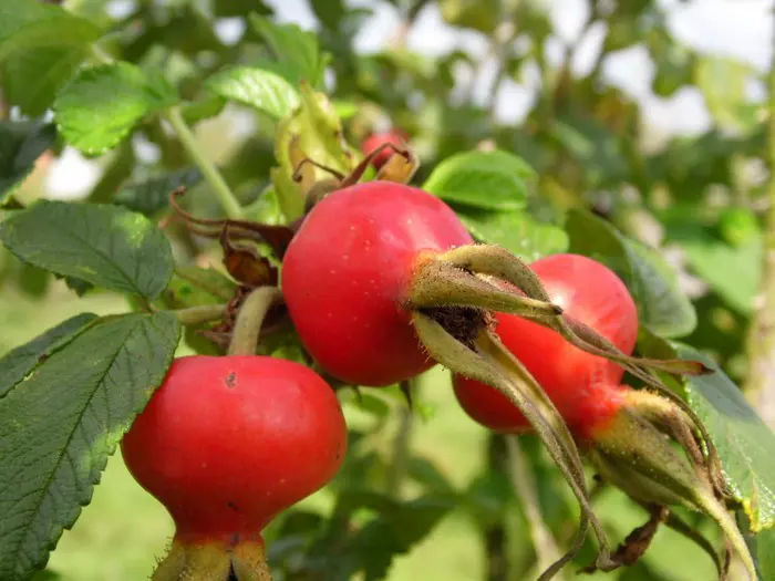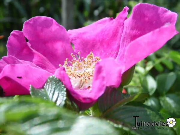 Ideaal voor een heg, het zijn dichte, doornige struiken met geurende enkele paarsrode bloemen met opvallende gele meeldraden, die de ganse zomer bloeien tot eind augustus en nadien krijg je de glanzende rode bottels die eerder op kleine appeltjes lijken .