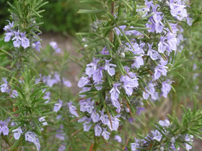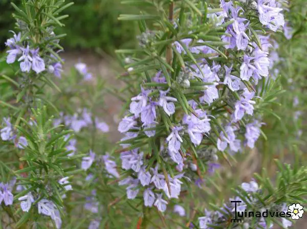 Dit aromatisch kruid heeft naalden gelijkend op die van een kerstboom met blauwe bloemen.