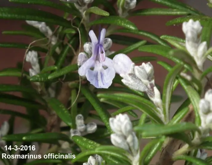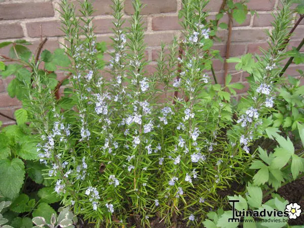 Dit aromatisch kruid heeft naalden gelijkend op die van een kerstboom, bloeit met blauwe bloemen.