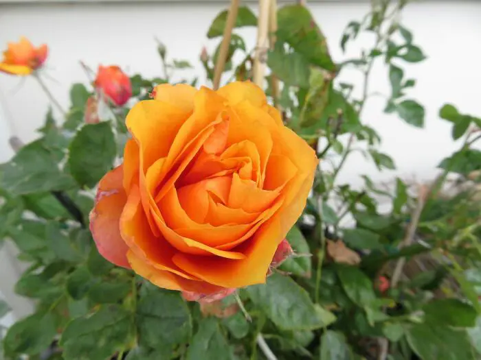 Rosa 'Estoril Beau Monde' is een potroos met oranjegele, goed gevulde, grote bloemen met een heerlijke geur.