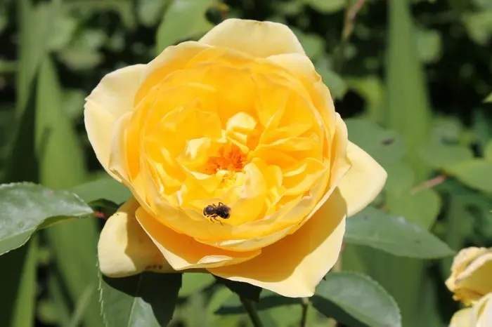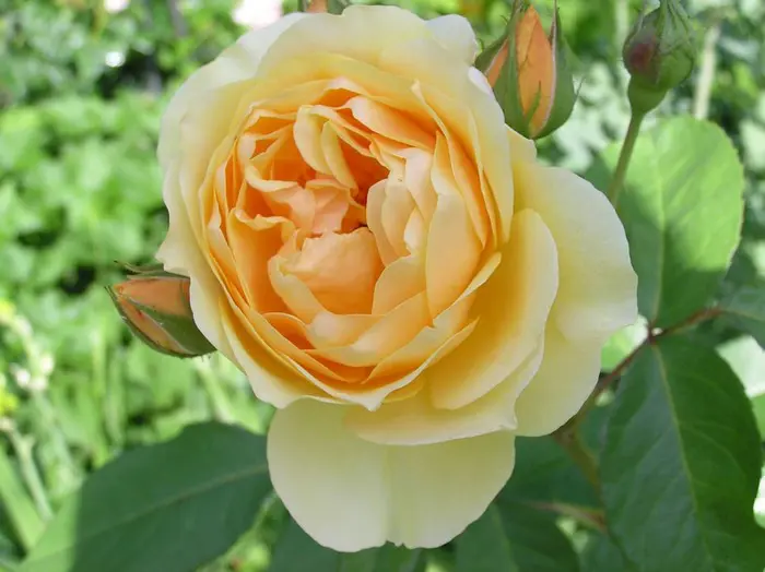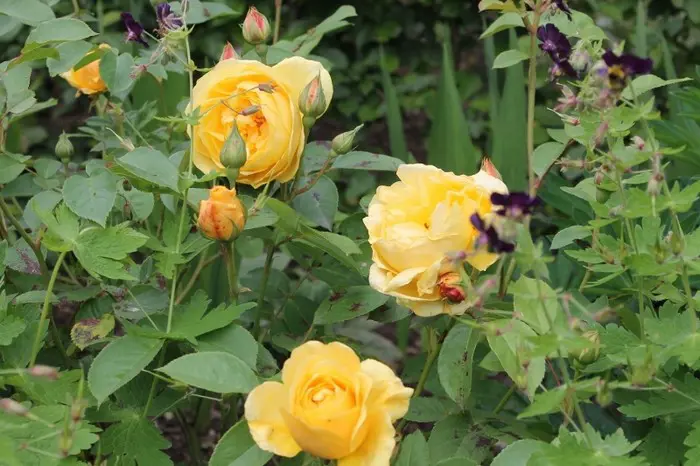 Rosa 'Graham Thomas' is een sterk geurende herbloeiende roos met grote, goed gevulde komvormige, goudgele tot citroengele bloemen.