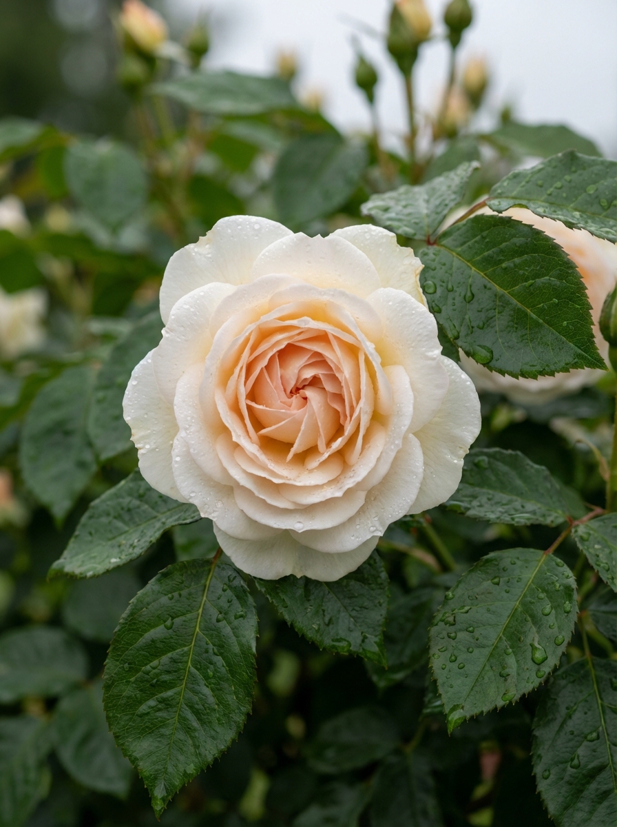 De kleur is cremewit met in het centrum een abrikoosroze zweem.