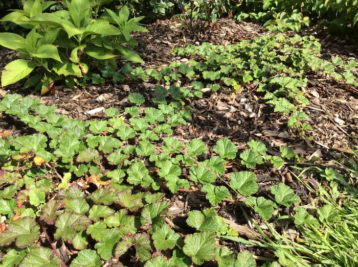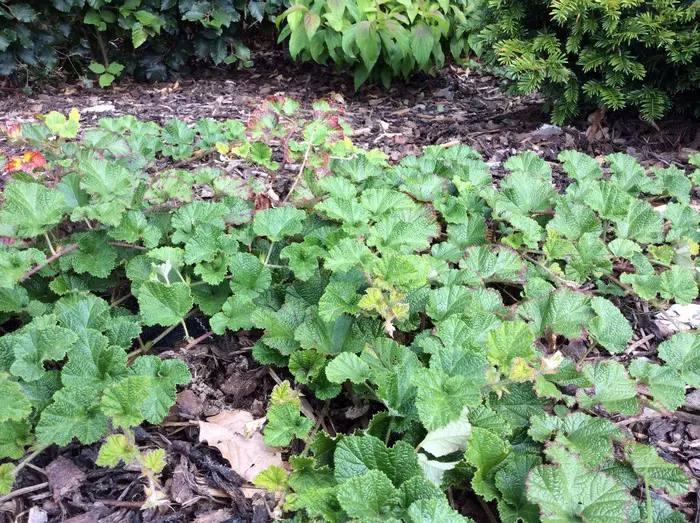 Moest de plant na een aantal jaren niet meer mooi zijn kan men ze in het voorjaar gewoon trimmen met de grasmaaier. De Rubus pentalobus zal zich snel weer herstellen.