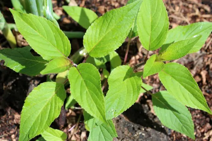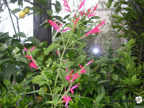 Salvia elegans is een halfheester met lichtgroene bladeren die naar ananas smaken en geuren.