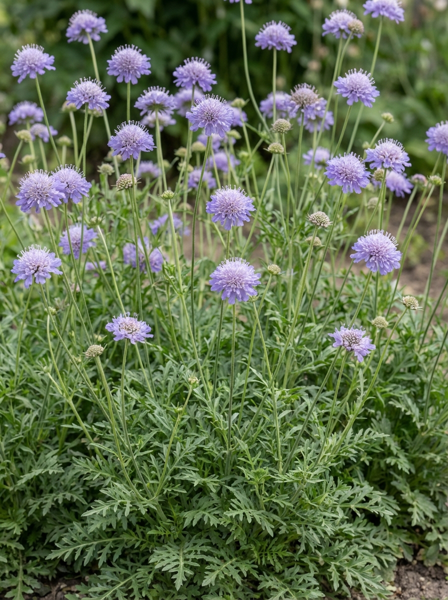 Scabiosa columbaria is een langbloeiende plant met een breder bloemhoofdje dan de andere soorten Scabiosa. De bloemen zijn licht lavendelblauw, witter naar het centrum toe.