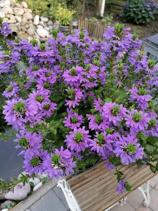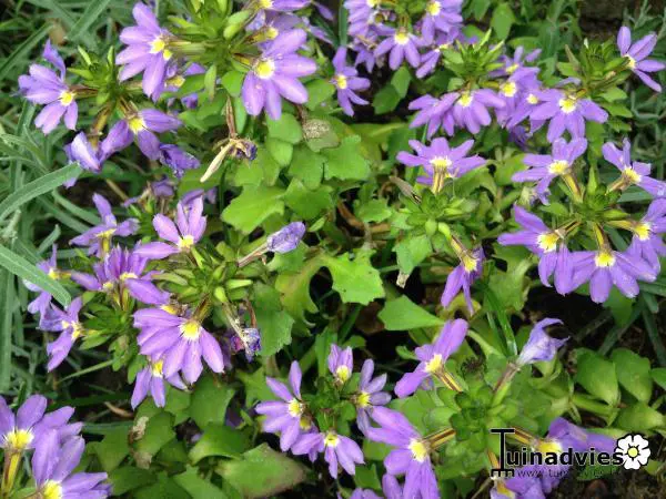 Scaevola 'WHIRLWIND Blue' is een ideale balkonplant die goed te gebruiken is voor hangmanden.