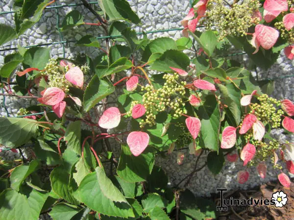 Schizophragma hydrangeoides var. hydrangeoides 'Roseum' is een zelfhechtende klimplant.